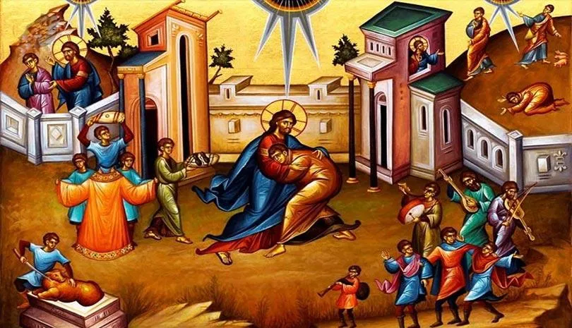 «Ἔτι δὲ αὐτοῦ μακρὰν ἀπέχοντος εἶδεν αὐτὸν ὁ πατὴρ αὐτοῦ καὶ ἐσπλαγχνίσθη, καὶ δραμὼν ἐπέπεσεν ἐπὶ τὸν τράχηλον αὐτοῦ καὶ κατεφίλησεν αὐτὸν» (Λουκ. ιε΄ 20). Κι ἐνῶ βρισκόταν ἀκόμα μακριά, τὸν εἶδε ὁ πατέρας του καὶ τὸν σπλαχνίστηκε, ἔτρεξε ἀμέσως κοντά του, ἔπεσε μὲ ἀγάπη στὸν τράχηλό του καὶ τὸν γέμισε φιλιά.
